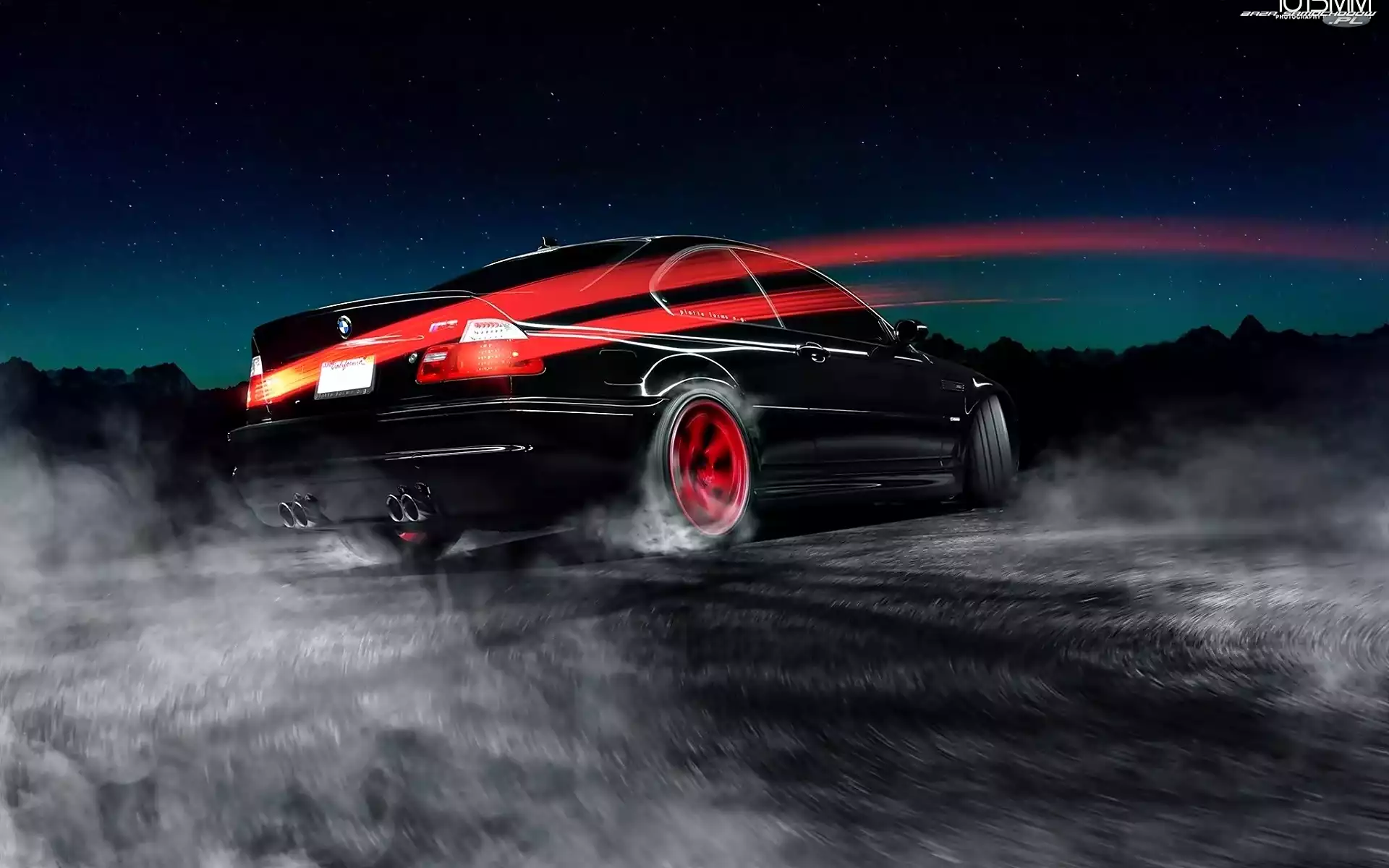 E 46, Samochód, Noc, Smuga, BMW, Dym- Zdjęcia samochodów