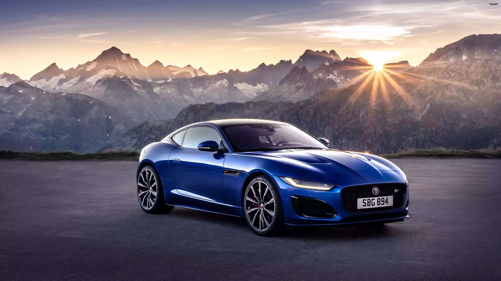 Promienie słońca, Jaguar F-Type, Góry- Zdjęcia samochodów