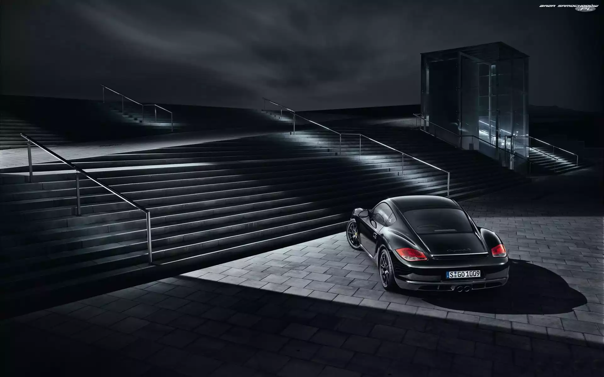 Samochód: Schody, Czarny, Porsche Cayman S