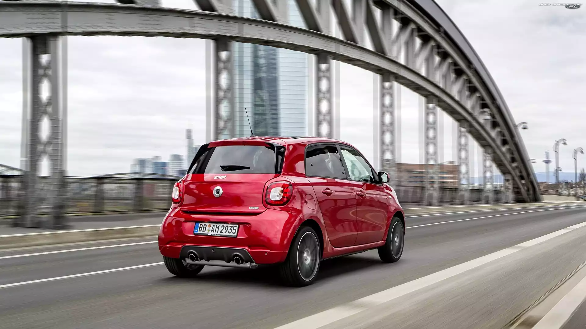 Smart Forfour Brabus, Ulica, Czerwony, 2017 Biało-zielony, Smart Forfour Smart Forfour Czerwony, Smart Forfour Brabus 2017 Generacja, Smart Forfour, Druga Smart Forfour Brabus, Tył, Czerwony, 2017 2017, Czerwony, Smart Forfour Brabus Smart EQ Forfour 2017, Budowle, Smart Forfour Brabus, Ulica 2017, Czerwony, Smart Forfour Brabus