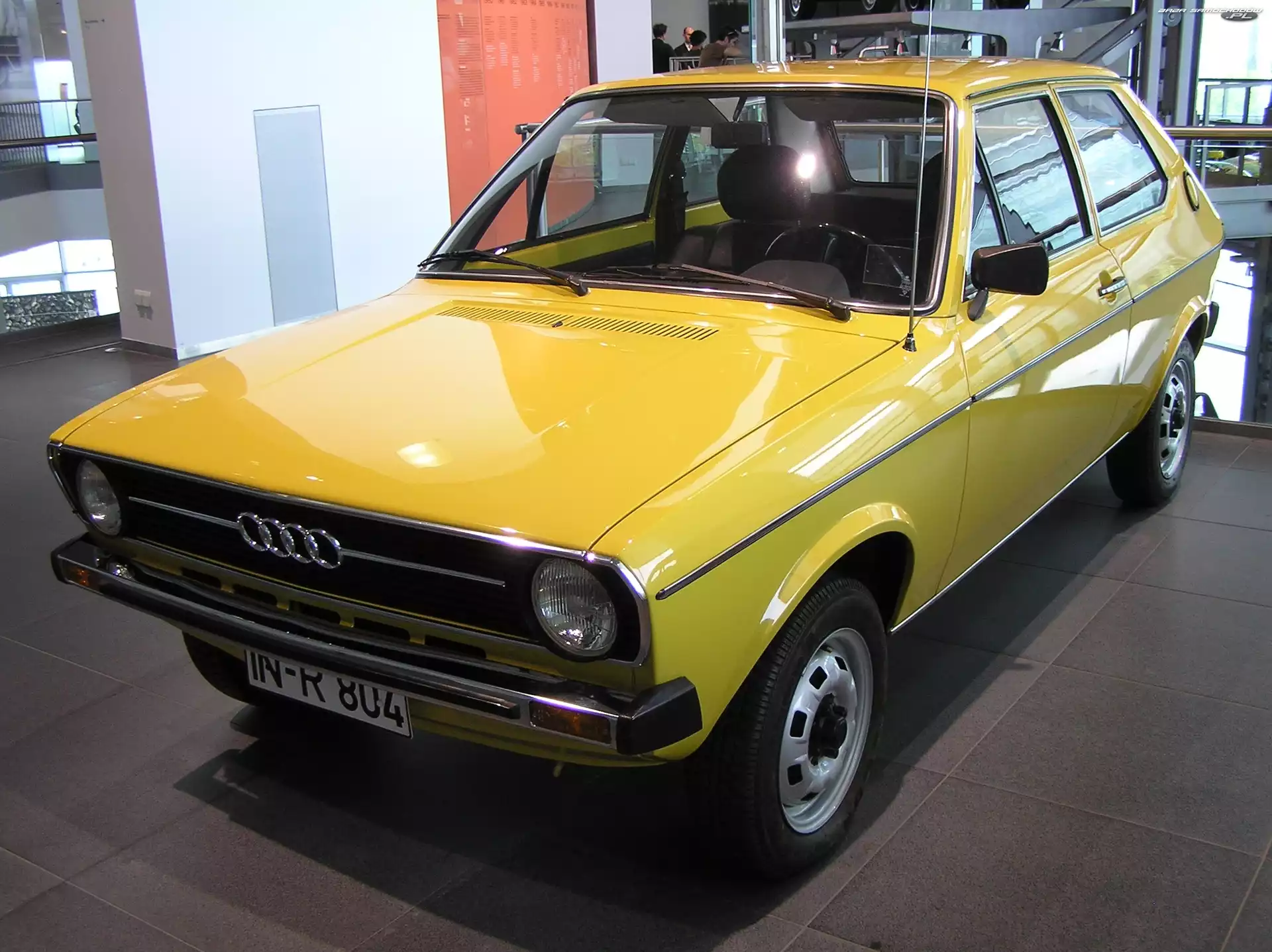 Audi 50 Wystawa, Audi 50, Salon Reklama, Pomarańczowe, Audi 50 Hatchback, Audi 50 Audi 50, Chrom, Przód, Zderzak Drzwi, Audi 50 Prezentacja, Audi 50, Wystawa